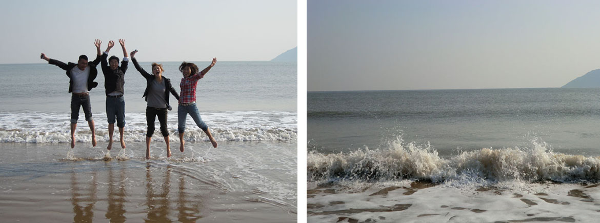 欣賞完美輪美奐的沙雕,我們來到了海邊。沙雕城對面就是一片蔚藍的汪洋大海。十一月的海邊雖然有點冰涼,但也不能阻止我們看到寬闊大海激動的心情。我們迎著海風奔跑,放飛翅膀,放飛夢想,感受海天交接的壯觀。今天的行程可以用一句話來描述:魅力舟山,快樂朱家尖島;舟山朱家尖島,歡樂沙雕城。