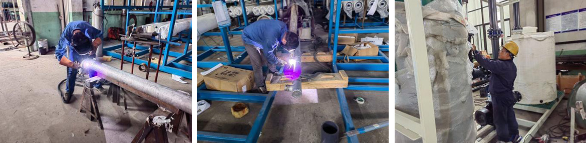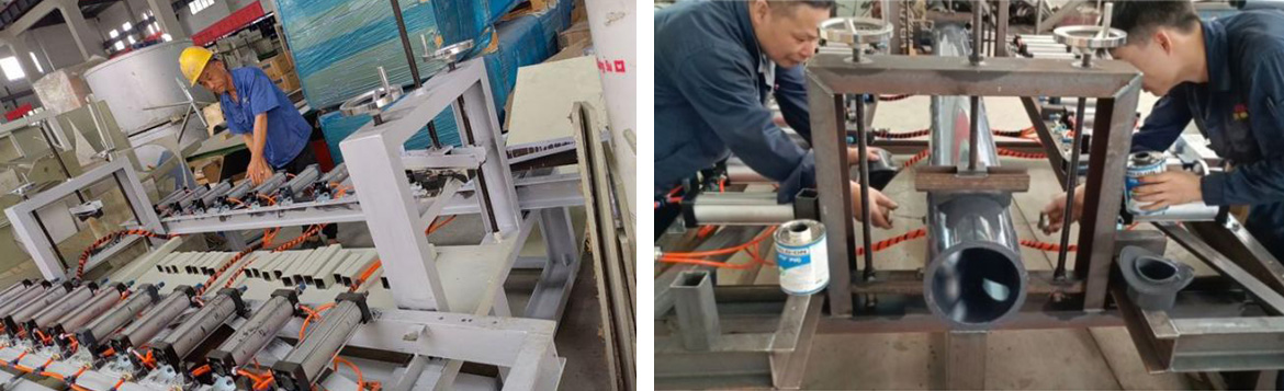 為了提高生產(chǎn)效率及保證產(chǎn)品質(zhì)量,公司設(shè)計(jì)開發(fā)了生產(chǎn)輔助設(shè)備,成功制作了一臺(tái)半自動(dòng)化工裝設(shè)備---膜管組件的組裝黏連機(jī),效率提高3到4倍,質(zhì)量明顯改變,生產(chǎn)員工勞動(dòng)強(qiáng)度大大改善,為此我們點(diǎn)個(gè)贊。