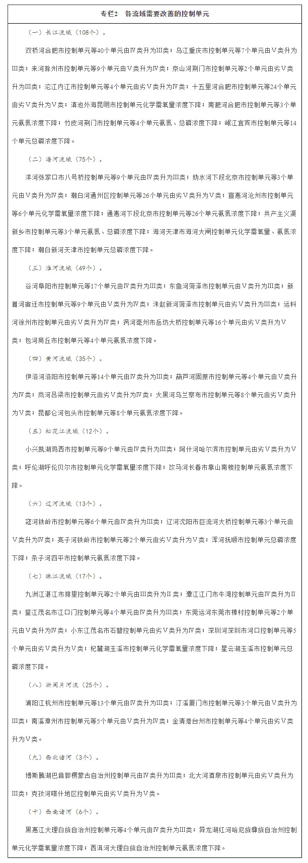 實(shí)施以控制單元為基礎(chǔ)的水環(huán)境質(zhì)量目標(biāo)管理。依據(jù)主體功能區(qū)規(guī)劃和行政區(qū)劃,劃定陸域控制單元,建立流域、水生態(tài)控制區(qū)、水環(huán)境控制單元三級分區(qū)體系。實(shí)施以控制單元為空間基礎(chǔ)、以斷面水質(zhì)為管理目標(biāo)、以排污許可制為核心的流域水環(huán)境質(zhì)量目標(biāo)管理。優(yōu)化控制單元水質(zhì)斷面監(jiān)測網(wǎng)絡(luò),建立控制單元產(chǎn)排污與斷面水質(zhì)響應(yīng)反饋機(jī)制,明確劃分控制單元水環(huán)境質(zhì)量責(zé)任,從嚴(yán)控制污染物排放量。全面推行“河長制”。在黃河、淮河等流域進(jìn)行試點(diǎn),分期分批科學(xué)確定生態(tài)流量(水位),作為流域水量調(diào)度的重要參考。深入實(shí)施《水污染防治行動計(jì)劃》,落實(shí)控制單元治污責(zé)任,完成目標(biāo)任務(wù)。固定污染源排放為主的控制單元,要確定區(qū)域、流域重點(diǎn)水污染物和主要超標(biāo)污染物排放控制目標(biāo),實(shí)施基于改善水質(zhì)要求的排污許可,將治污任務(wù)逐一落實(shí)到控制單元內(nèi)的各排污單位(含污水處理廠、設(shè)有排放口的規(guī)?;笄蒺B(yǎng)殖單位)。面源(分散源)污染為主或嚴(yán)重缺水的控制單元,要采用政策激勵、加強(qiáng)監(jiān)管以及確保生態(tài)基流等措施改善水生態(tài)環(huán)境。自2017年起,各省份要定期向社會公開控制單元水環(huán)境質(zhì)量目標(biāo)管理情況。