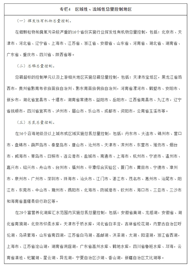 總磷、總氮超標(biāo)水域?qū)嵤┝饔颉^(qū)域性總量控制??偭壮瑯?biāo)的控制單元以及上游相關(guān)地區(qū)要實(shí)施總磷總量控制,明確控制指標(biāo)并作為約束性指標(biāo),制定水質(zhì)達(dá)標(biāo)改善方案。重點(diǎn)開展100家磷礦采選和磷化工企業(yè)生產(chǎn)工藝及污水處理設(shè)施建設(shè)改造。大力推廣磷銨生產(chǎn)廢水回用,促進(jìn)磷石膏的綜合加工利用,確保磷酸生產(chǎn)企業(yè)磷回收率達(dá)到96%以上。沿海地級及以上城市和匯入富營養(yǎng)化湖庫的河流,實(shí)施總氮總量控制,開展總氮污染來源解析,明確重點(diǎn)控制區(qū)域、領(lǐng)域和行業(yè),制定總氮總量控制方案,并將總氮納入?yún)^(qū)域總量控制指標(biāo)。氮肥、味精等行業(yè)提高輔料利用效率,加大資源回收力度。印染等行業(yè)降低尿素的使用量或使用尿素替代助劑。造紙等行業(yè)加快廢水處理設(shè)施精細(xì)化管理,嚴(yán)格控制營養(yǎng)鹽投加量。強(qiáng)化城鎮(zhèn)污水處理廠生物除磷、脫氮工藝,實(shí)施畜禽養(yǎng)殖業(yè)總磷、總氮與化學(xué)需氧量、氨氮協(xié)同控制。