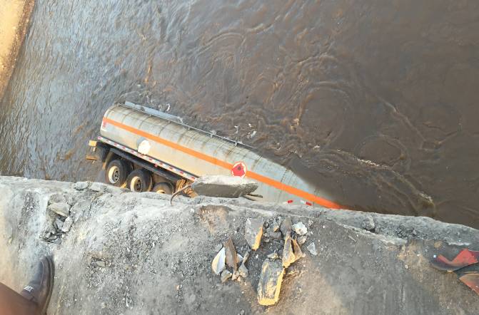 事故現(xiàn)場(chǎng)側(cè)翻落水粗苯罐車
