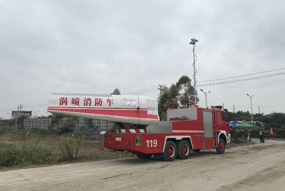 使用渦噴消防車干擾風向,減少對周邊群眾影響